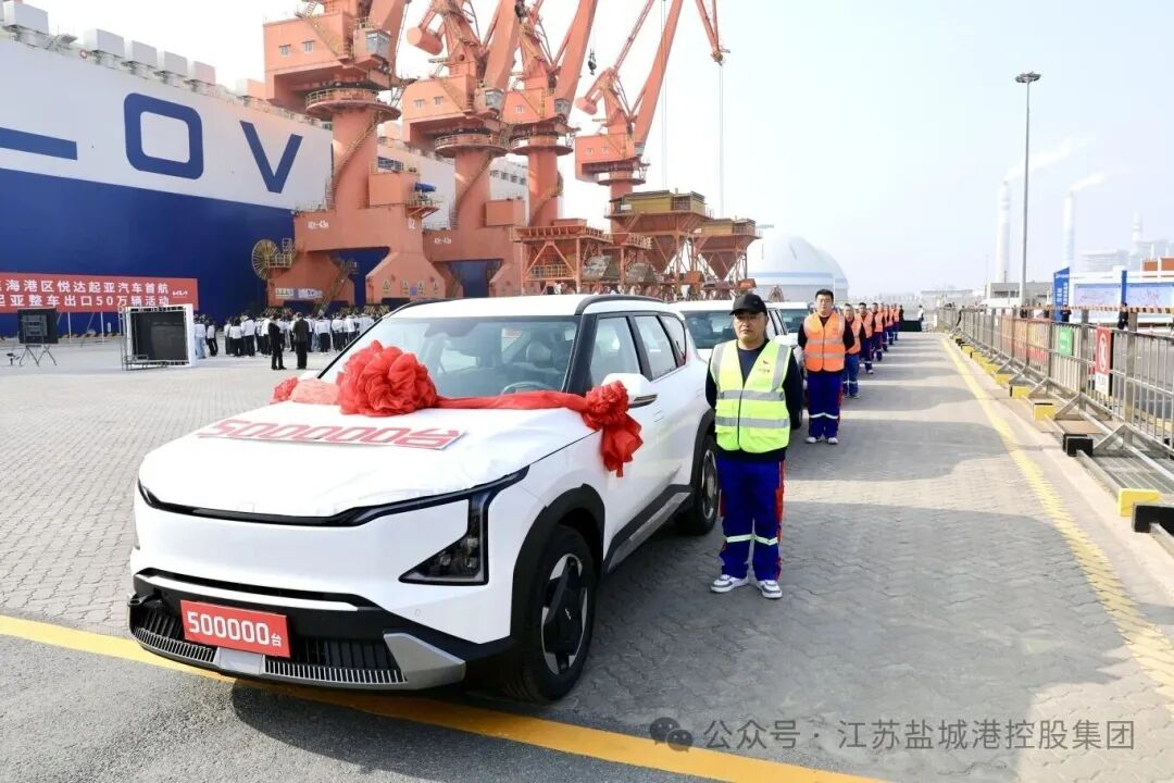 船笛长鸣,随着2000辆汽车缓缓驶入“格罗阳光”号船舱,标志着悦达起亚整车出口第50万辆装船起航仪式圆满成功,这也是悦达企业在a片免费看滨海港区首次开展汽车滚装出口业务。为全力保障此次活动,a片免费看滨海港区从人力组织、场地设置、通关协调、后勤保障等多维度发力,构建起一套完整的后勤服务保障链接。