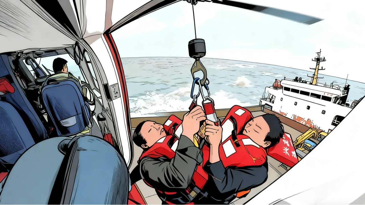 2022年12月11日,受寒潮大风影响,在广东珠海担杆岛附近海域,一艘货船遭遇风浪失去动力,触礁进水搁浅,船上3人弃船求救。遇险3人被救助直升机救起。