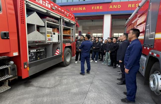 单打独斗难成气候,联动共建凝聚安全合力。盐港物业公司通过与跨境电商园、保安公司等多单位实战协作,不仅检验了各场景应急预案的科学性与可操作性,更磨合了协同响应机制,打破单位间沟通壁垒,大幅提升突发事故联合处置效率。港湾开发建设集团深化消企联建,组织员工走进消防站,详细了解液压破拆工具组、防护装备、消防车随车器材等救援设备的功能与使用,正式成立消防应急救援队并举行授旗仪式,打造出一支消防救援“尖刀队伍”。