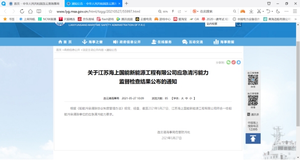 根据《交通运输部关于修改《中华人民共和国船舶污染海洋环境应急防备和应急处置管理规定》的决定(中华人民共和国交通运输部令2019年第40号)》的指示精神,我司于2022年1月份对应急防备和应急处置能力进行了自查,现报告如下: