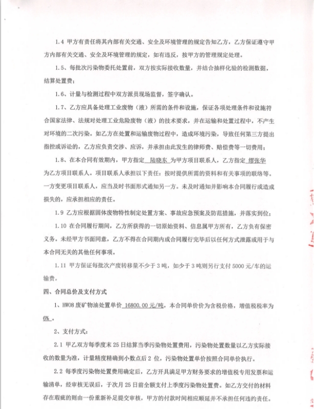 本公司在污染物处理工作中贯彻“安全第一、预防为主”的方针,严格实行标准化管理和作业,做到规范操作、安全操作。