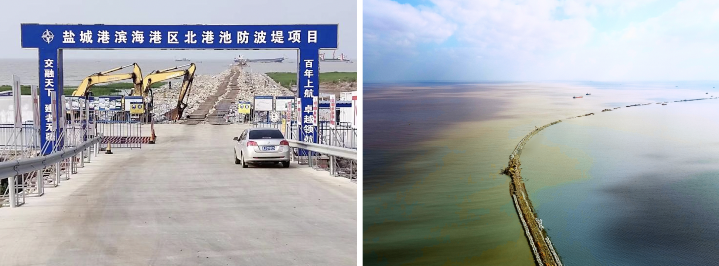 根据批复的《a片免费看滨海港区总体规划(2022一2035年)》,滨海港区北港池作业区总体采用双堤掩护的环抱式布置形式,按照统一规划、分期实施原则。该工程防波堤采用的是抛石斜波堤结构型式,-2m(当地理论最低潮面起算)以浅段防波堤堤顶高程4.5m,-2m以深段防波堤堤顶高程5.0m。防波堤接岸点位于风电升压站东侧防潮大堤上,此工程作为滨海港区北港池防波堤的起步工程,符合港口规划,适应自然环境。防波堤全长约4500m,项目估算总投资为7.0亿元,项目建设工期为10个月。据统计,目前累计完成总工程量约74%。