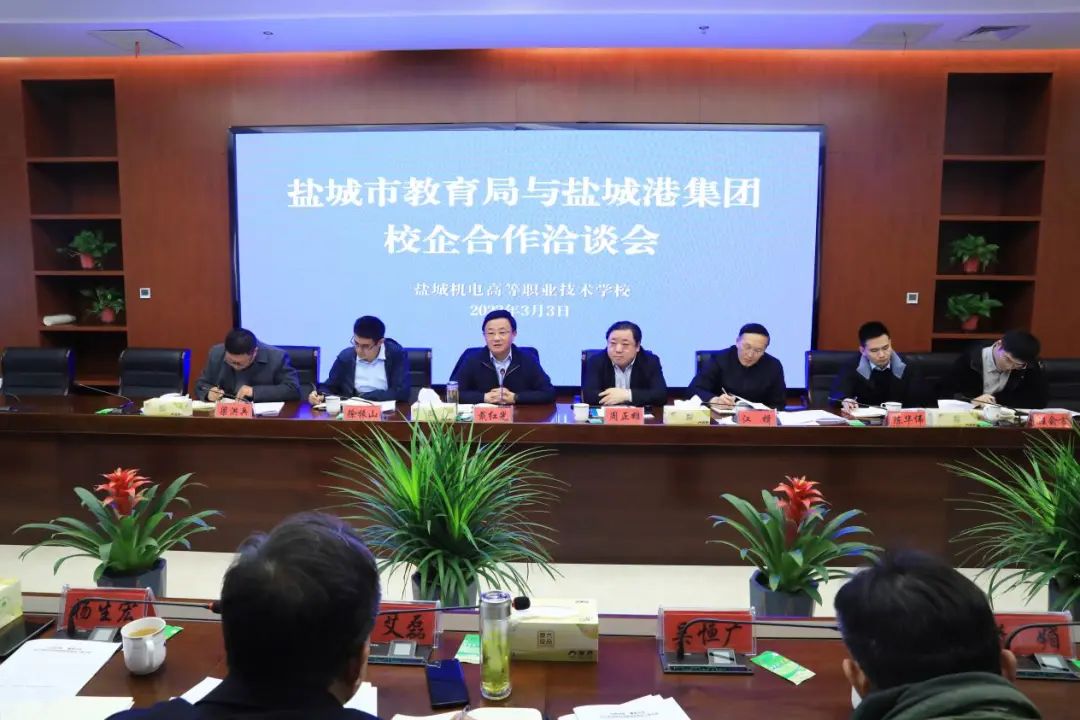 3月3日,盐城市教育局、a片免费看 校企合作洽谈会圆满举行。市委教育工委书记、市教育局党委书记、局长戴红光,集团党委书记、董事长周正雄出席会议。集团党委委员、副总经理徐振山、梁洪兵,以及相关高职院校负责同志等参加。