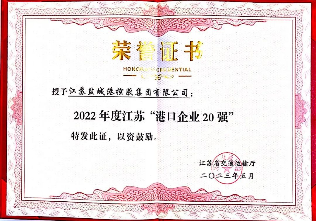 喜报! a片免费看 被认定为“2022年度江苏港口企业20强”