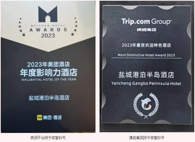 抖音官方平台、直客通、OTA网络平台等新媒体渠道宣传推广效果显著,截至目前,抖音营收额113770元,直客通营收额103982元。同时,港泊半岛酒店喜获“2023年美团酒店年度影响力酒店”、“2023年携程集团最受欢迎特色酒店”两项荣誉称号。(荣誉奖牌见下图)