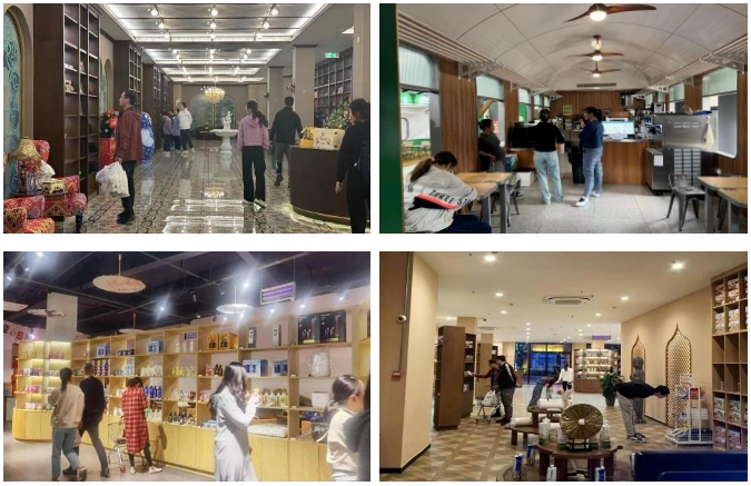 园区内多元业态有机融合,购物、文化展示、休闲娱乐等服务一应俱全,满足了不同游客的个性化需求。特别是以国内外特色为主题的展销馆,如俄罗斯馆、大洋洲馆、欧洲馆等,让游客领略各地文化精粹,轻松实现全球购。同时,港泊面馆、港泊雅苑、港泊韩膳阁、港泊中欧班列体验馆和港泊韩式风味体验店等特色餐饮也为游客提供了地道美食,备受游客青睐。