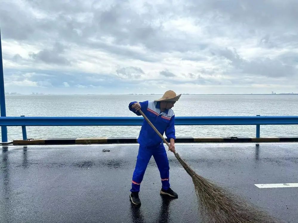 在港区的道路上,队员们顶着烈日,清理着道路护栏和杂物垃圾。他们用“严真细实快”的工作作风,时刻维护着港容港貌的“高颜值”。
