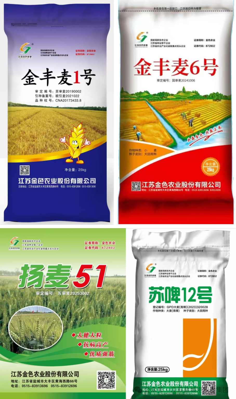种子是农业的“芯片”,选对良种,就等于握住了高产的“主动权”。公司凭借丰富的品种储备,精选出金丰麦1号至6 号、扬麦51及苏啤12号等优质小麦品种,这些品种不仅抗病性强、抗逆性佳,更具备优异的产量潜力,能适配不同土壤与气候条件。
