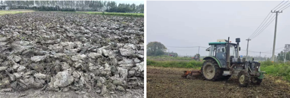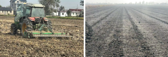 为预防连续阴雨天气给秋播耕整带来的“烂耕”“烂种”风险,水稻收割一结束,技术人员便迅速深入田间,逐块排查墒情。对于土壤湿度大、易积水的地块,立即开挖排水沟,加速积水排出,降低土壤含水量,为耕整作业扫清障碍。在耕整过程中,公司严格执行秸秆还田率达到100%标准,将农业废弃物变废为宝,既改善土壤结构,又增加有机质含量;旋耕整地严格把控质量,土壤深翻深度控制在25—30厘米,确保耕作层疏松透气,有利于小麦根系下扎;农机操作要求“耕翻到头、到边,无漏耕、无死角”,确保地块耕整质量均匀一致,为高质量播种打造“优质土壤环境”。