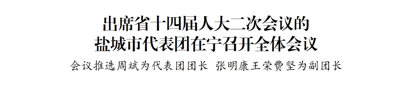 江苏省第十四届人民代表大会第二次会议将于1月23日上午在南京开幕。22日晚,盐城市代表团在驻地召开全体会议,传达学习省两会党员负责同志会议精神和省委书记信长星讲话要求,推选代表团团长、副团长,宣布小组召集人名单,审议有关草案。