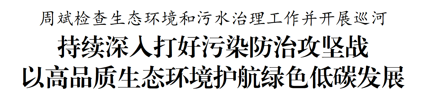 连日来,市委书记周斌分别到全市11个板块,现场检查生态环境和污水治理工作并开展巡河。他强调,要深入学习贯彻习近平生态文明思想和对江苏工作重要讲话精神,坚定不移抓好长江大保护,动真碰硬、全力推进突出问题整改,持续深入打好污染防治攻坚战,加快构建与经济社会发展相适应的生态环境治理体制机制,以高品质生态环境护航绿色低碳高质量发展。